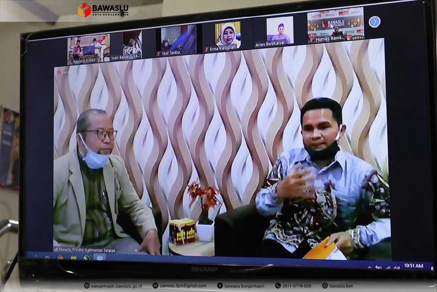 Azhar Ridhanie Anggota Bawaslu Kalsel Koordinator Divisi Penanganan Pelanggaran sedang memandu diskusi